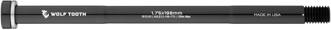 Axle Length:198 mmThread Pitch:1.75Thread Length:17 mmManufacturer Number:AXLE12198175Contents:1 x Wolf Tooth Components 12 mm thru-axle
