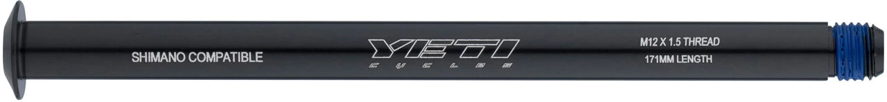 Specifications:Over Locknut Dimension:Rear: 148 mmAxle Diameter:12 mmTechnical Information:Use:rear: 12 x 148 mmType:thru-axleAxle Material:aluminiumAxle Length:Rear: 171 mmNominal Diameter:M12Thread Pitch:1.5Manufacturer Number:YC100425006