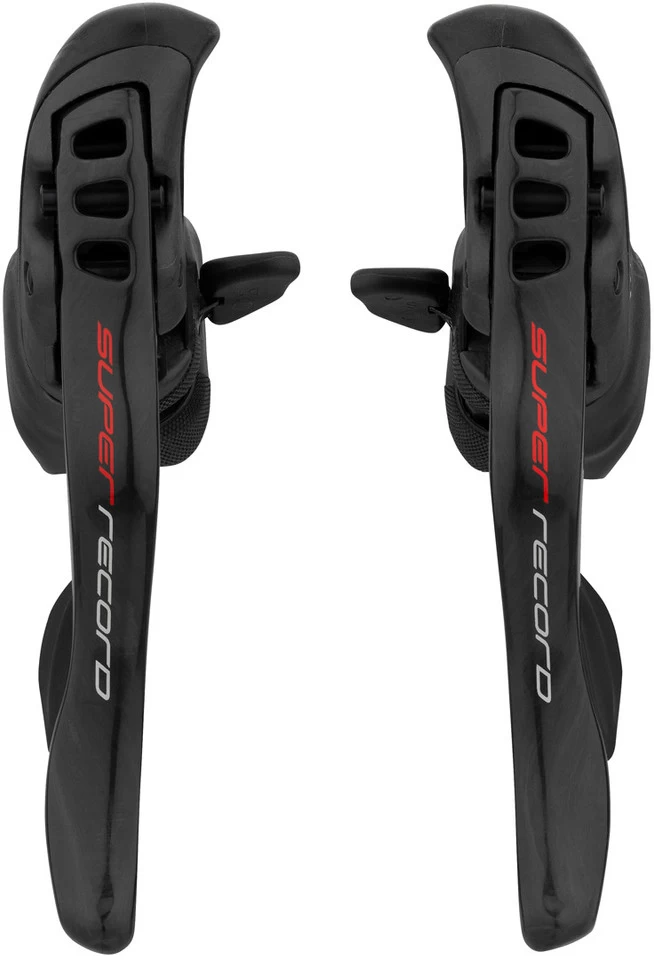 Specifications:Series:Super RecordApplication:Road, Triathlon, CyclocrossGearing:2×12-speedTechnical Information:Brake Lever Material:compositeLever Body Material:compositeMount:clamp (closed)Compatibility:side-pull rim brakesdirect mount rim brakesFeatures:Ultra-Shift™ Ergonomics: secure grip in all positions for fast and precise shifting and brakingnew rubber Vari-Cushion™ hand protection: natural silicone material with moulded areas that follow along the grip of the first and second fingerThe knurled areas drain water while keeping the handguard dry, thereby increasing grip.internal texture for variable thickness that guarantees the best possible comfortUltra Shift™ mechanism with differentiation of the maximum number of detents during upshifting, depending on which sprocket the rider is shifting fromonly mechanical set on the market that allows for multiple configurations (up to 5 sprockets)quick positioning on the desired gear ratio when starting off strongly on an incline or approaching a curve (up to 4 gear ratios with chain on the first 4 sprockets, up to 3 gear ratios with the chain positioned above the 4th sprocket)cable sheaths with minimal frictional resistance (No-Bulge™)insert for large handscapable of making fine adjustments to the front derailleurTechnology:Ergopower™