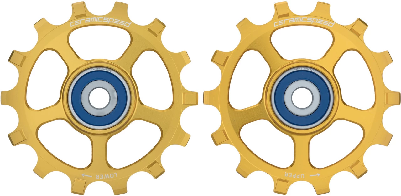 Manufacturer Numbers:black:103346gold:103347Contents:1 x CeramicSpeed SRAM Eagle Coated lower derailleur pulley1 x CeramicSpeed SRAM Eagle Coated upper derailleur pulley1 x CeramicSpeed oil, 15 ml dropper bottle1 x CeramicSpeed grease, 5 ml syringe1 x sticker sheet
