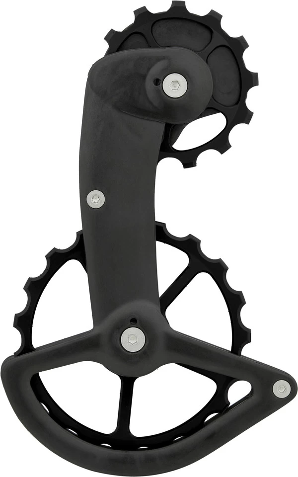 Specifications:Application:Road, Triathlon & Time TrialGearing:12-speedCassette Teeth (max.):34-toothCompatibility:Shimano Dura-Ace Di2 RD-R9250, Ultegra Di2 RD-R8150Technical Information:Derailleur Pulleys:13 tooth (upper derailleur pulley), 19 tooth (lower derailleur pulley)Outer Cage Material:polyamide, carbonInner Cage Material:polyamide, carbonOther Materials:aluminiumBearings:CeramicFeatures:oversize derailleur pulley system with ceramic bearings, offering unique durability and performancereduced friction and increased energy savings for a highly efficient drivetrainhigh-performance bearings with very hard, above-average supple and resilient ceramic balls made of grade-3 silicon nitride (best achievable grade for ceramic bearings)ball bearing races additionally metal-coated for more performance and durabilityintegrated stop bolt for simplified installationfour spring tension optionscompatible with 11-30 and 11-34 12-speed cassetteshandmade in DenmarkTechnology:Ceramic Bearings by CeramicSpeed