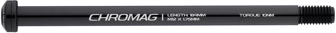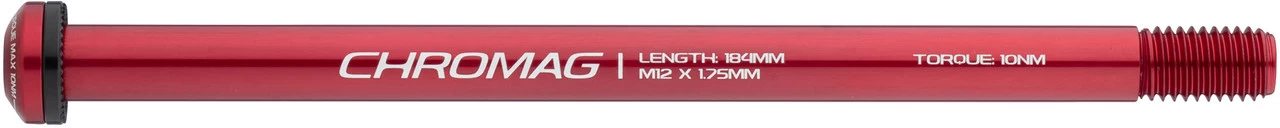 Specifications:Over Locknut Dimension:Rear: 148 mmAxle Diameter:12 mmTechnical Information:Use:rear: 12 x 148 mmType:thru-axleAxle Material:aluminium (7075-T6)Axle Length:184 mmNominal Diameter:M12Thread Pitch:1.75Features:solid, rigid aluminium thru axle for Chromag framesomission of lever eliminates the risk of getting stuckfixed steel washer to protect the frame’s paintM6 tool holderManufacturer Numbers:black:145-003-02red:145-003-03Contents:1 x Chromag Stealth Boost thru-axle