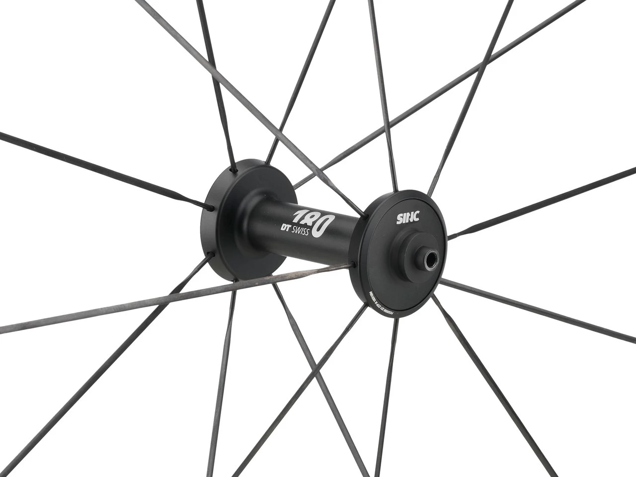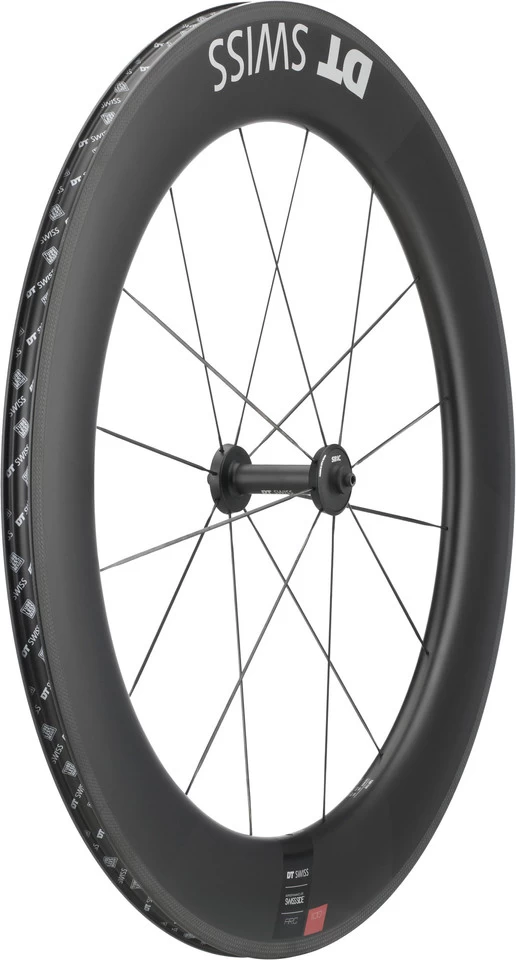 Specifications:Application:Road, Triathlon & Time TrialWheel Size:28″Tyre Type:clincher tyreNumber of Spokes:16 (front), 21 (rear)Brake Type:rim brakeTubeless System:Tubeless ReadyTechnical Information – Rim:Rim Flange:with hookDimensions (ETRTO):17-622Inner Width:17 mmOuter Width:28 mmDepth:80 mmValve Hole Diameter:SV/Presta (6.5 mm)Rim Material:CarbonTechnical Information – Front Hub:Type:180 straight pullOver Locknut Dimension:9 x 100 mm quick releaseBearings:Ceramic bearings (SINC)Body Material:aluminiumTechnical Information – Rear Hub:Type:180 straight pullOver Locknut Dimension:10 x 130 mm quick releaseBearings:Ceramic bearings (SINC)Body Material:aluminiumFreehub Body Material:aluminiumFreehub Body:Ratchet EXP 36Technical Information – Lacing:Front Lacing Pattern:radialRear Lacing Pattern:radial (L), 2-cross (R)Spoke Type:DT Aero Comp II T-Head, DT Aerolite II T-HeadSpoke Material:stainless steelNipple Type:DT Pro Lock HiddenNipple Material:aluminiumApproved For:Weight Limit:100 kg (system weight)Air Pressure (max.):see manufacturer’s specificationsRecommended Tyre Width:see manufacturer’s specificationsTechnology:Intended use – Category 1