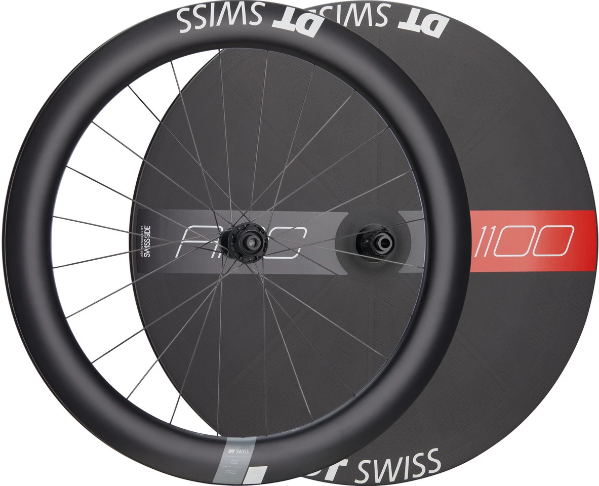 Freehub:Shimano RoadGearing:8-/9-/10-/11-/12-speedNote:The assembly of 8-/9-/10-speed cassettes on a Shimano Road Rotor requires a 1.85 mm spacer.Manufacturer Numbers:WARC140AIDXCA12588 + WARC110NIDJCA10998Contents:1 x DT Swiss ARC 1400 DICUT Carbon front wheel1 x DT Swiss ARC 1100 DICUT Carbon disc rear wheel1 x DT Swiss SRAM XDR freehub body1 x DT Swiss 5 mm end cap sets2 x DT Swiss tubeless valves2 x rolls DT Swiss tubeless rim tape3 x DT Swiss decals (black, chrome, gold)