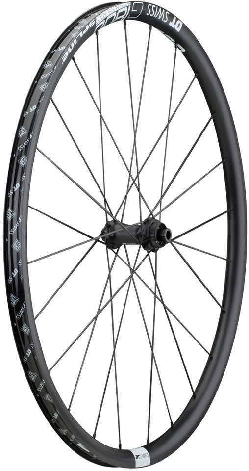 Specifications:Application:GravelWheel Size:28″Tyre Type:clincher tyreNumber of Spokes:24Brake Type:Center Lock DiscTubeless System:Tubeless ReadyTechnical Information – Rim:Dimensions (ETRTO):24-622Inner Width:24 mmOuter Width:28 mmDepth:25 mmValve Hole Diameter:SV/Presta (6.5 mm)Rim Material:aluminiumTechnical Information – Front Hub:Type:370Over Locknut Dimension:12 x 100 mm thru-axleBearings:precision bearings, sealedBody Material:aluminiumTechnical Information – Rear Hub:Type:370Over Locknut Dimension:12 x 142 mm thru-axleBearings:precision bearings, sealedBody Material:aluminiumFreehub Body Material:aluminium / steelFreehub Body:DT Swiss Pawl System®Technical Information – Lacing:Front Lacing Pattern:2-crossRear Lacing Pattern:2-crossSpoke Type:DT Aero Comp Wide, straight pullSpoke Material:steelNipple Type:DT Pro Lock Squorx Pro Head®Nipple Material:aluminiumApproved For:Weight Limit:130 kg (system weight)Air Pressure (max.):see manufacturer’s specificationsRecommended Tyre Width:see manufacturer’s specificationsFeatures:Adhesive: vinyl hub, Waterslide rim24 mm jaw widthTechnology:SPLINE