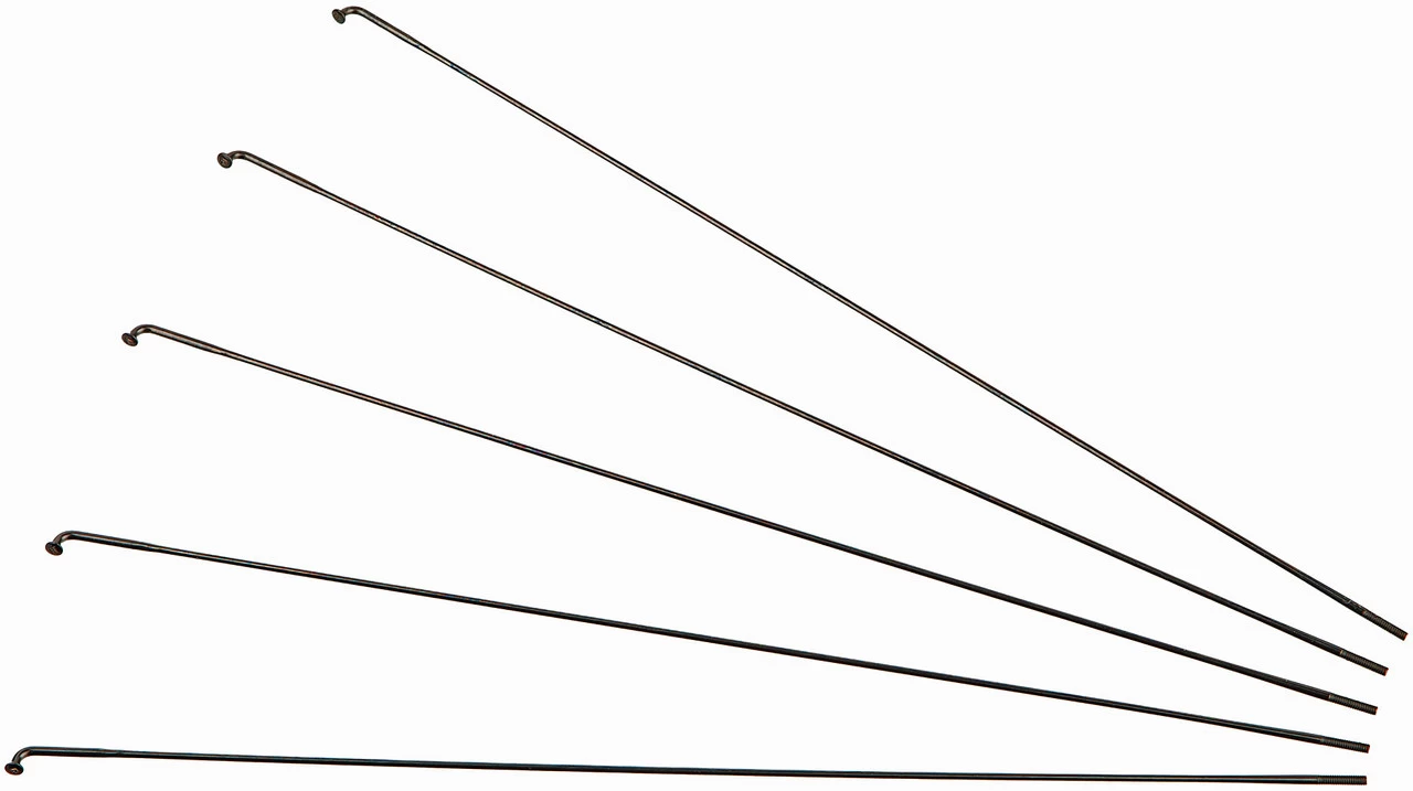 These spokes have two different diameters. The spoke is partially butted by cold forging. As a result, the diameter is smaller and thus enables a reduction in weight while at the same time improving the strain values.