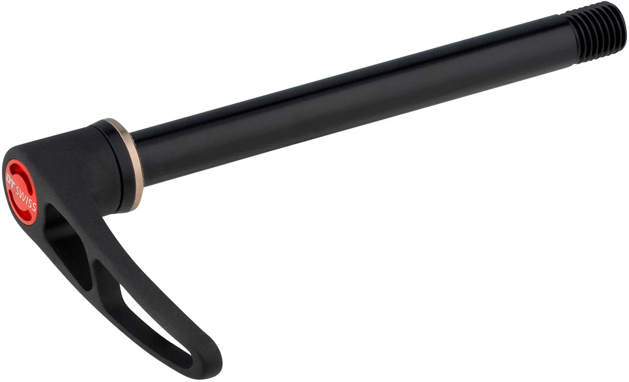 The RWS thru axle from DT Swiss allows you to attach the wheels to your road bike without tools. To make this possible, the axle is equipped with a quick-release lever.
