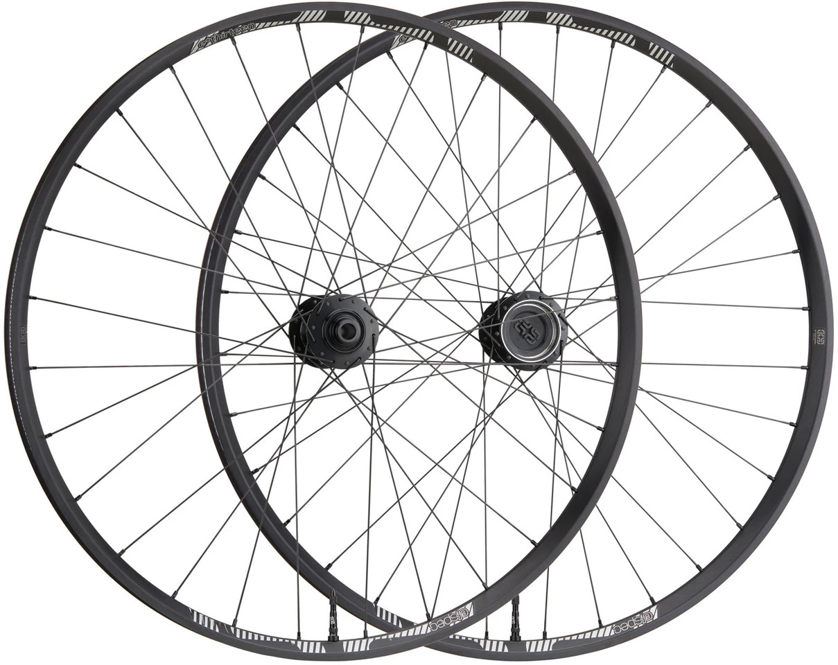Specifications:Application:EnduroWheel Size:29″Tyre Type:clincher tyreNumber of Spokes:28 (front), 32 (rear)Brake Type:6-bolt discWheel Standard:BoostTubeless System:Tubeless ReadyTechnical Information – Rim:Type:espec PlusRim Flange:hooklessDimensions (ETRTO):30-622Inner Width:30 mmOuter Width:33.5 mmDepth:18.7 mmERD:599 mmValve Hole Diameter:SV/Presta (6.5 mm)Rim Material:aluminium (6069)Technical Information – Front Hub:Over Locknut Dimension:15 x 110 mm thru-axleBody Material:aluminiumTechnical Information – Rear Hub:Over Locknut Dimension:12 x 148 mm thru-axleBody Material:aluminiumFreehub Body:pawlsTechnical Information – Lacing:Front Lacing Pattern:3-crossRear Lacing Pattern:3-crossSpoke Type:J-Bend, triple-buttedSpoke Size:295 mm/297 mm (front l/r), 291 mm/289 mm (rear l/r)Spoke Material:steelNipple Material:aluminiumColour Info:black-silver: