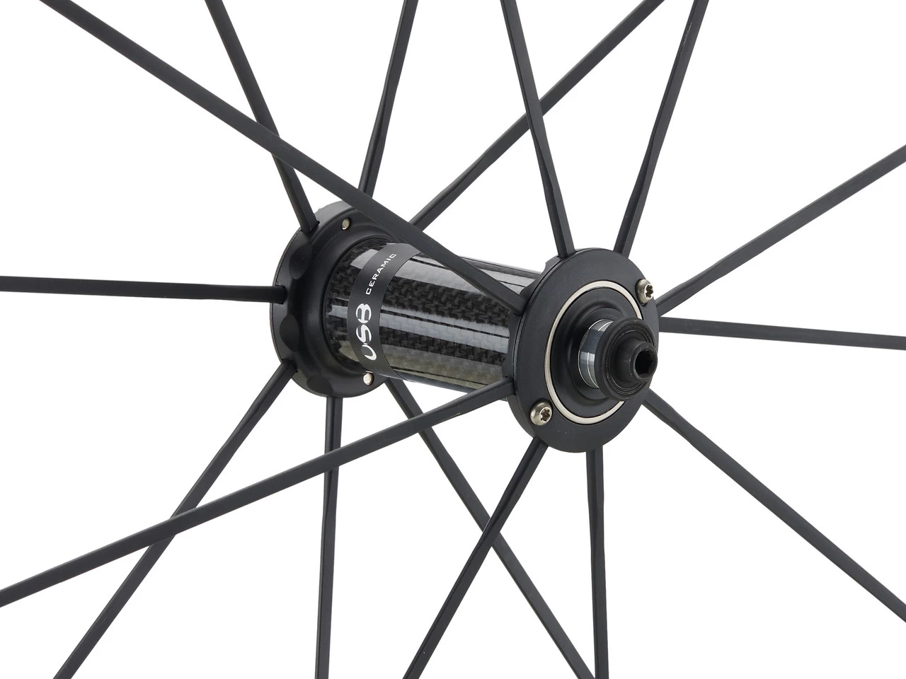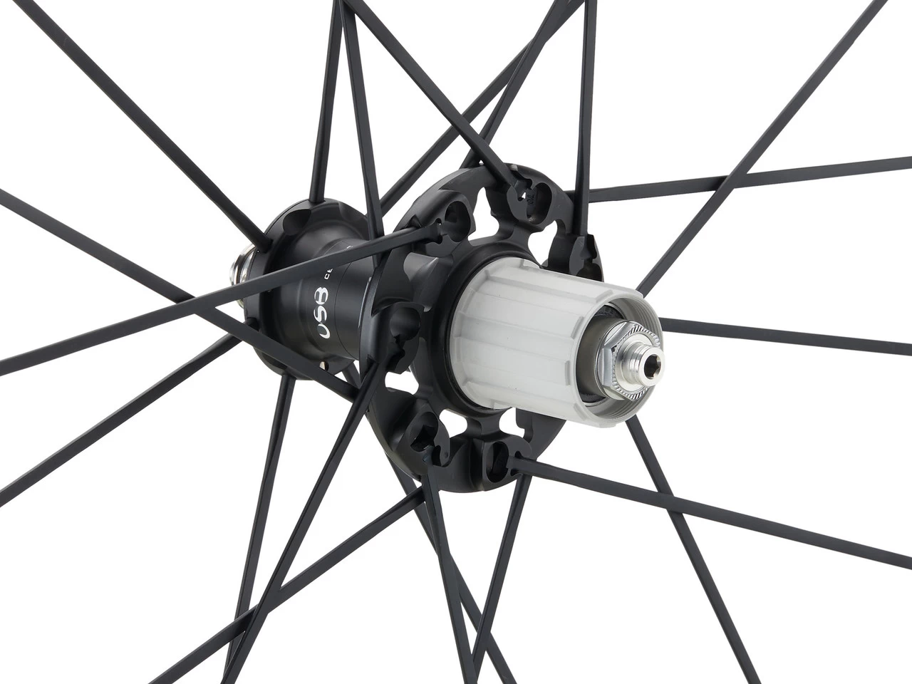 Specifications:Application:RoadWheel Size:28″Tyre Type:clincher tyreNumber of Spokes:16 (front), 21 (rear)Brake Type:rim brakeTubeless System:Tubeless ReadyTechnical Information – Rim:Rim Flange:with hookDimensions (ETRTO):17-622Inner Width:17 mmOuter Width:22.5 mmDepth:27 mm (front), 30 mm (rear)Valve Hole Diameter:SV/Presta (6.5 mm)Rim Material:aluminiumTechnical Information – Front Hub:Over Locknut Dimension:9 x 100 mm quick releaseBearings:Ceramic bearing (USB)Body Material:carbon, aluminiumTechnical Information – Rear Hub:Over Locknut Dimension:10 x 130 mm quick releaseBearings:Ceramic bearing (USB)Body Material:aluminiumFreehub Body Material:aluminiumFreehub Body:pawlsTechnical Information – Lacing:Front Lacing Pattern:radialRear Lacing Pattern:radial (L), 2-cross (R)Spoke Type:straight pull, bladed spokesSpoke Material:aluminiumNipple Material:aluminiumApproved For:Weight Limit:120 kg (system weight)Recommended Tyre Width:23 – 38 mmFeatures:2-Way Fit rims can be run with tyre and tube or tubelessdifferent rim depths on front and rear wheel to optimise steering and acceleration characteristicsTwo-to-One Spoke Ratio at the rear wheel to minimise energy losseshigh hub flange for stiffer wheelscarbon front hub bodyfreehub made of extra hardened aluminiumTechnology:Two-to-One Spoke Ratio