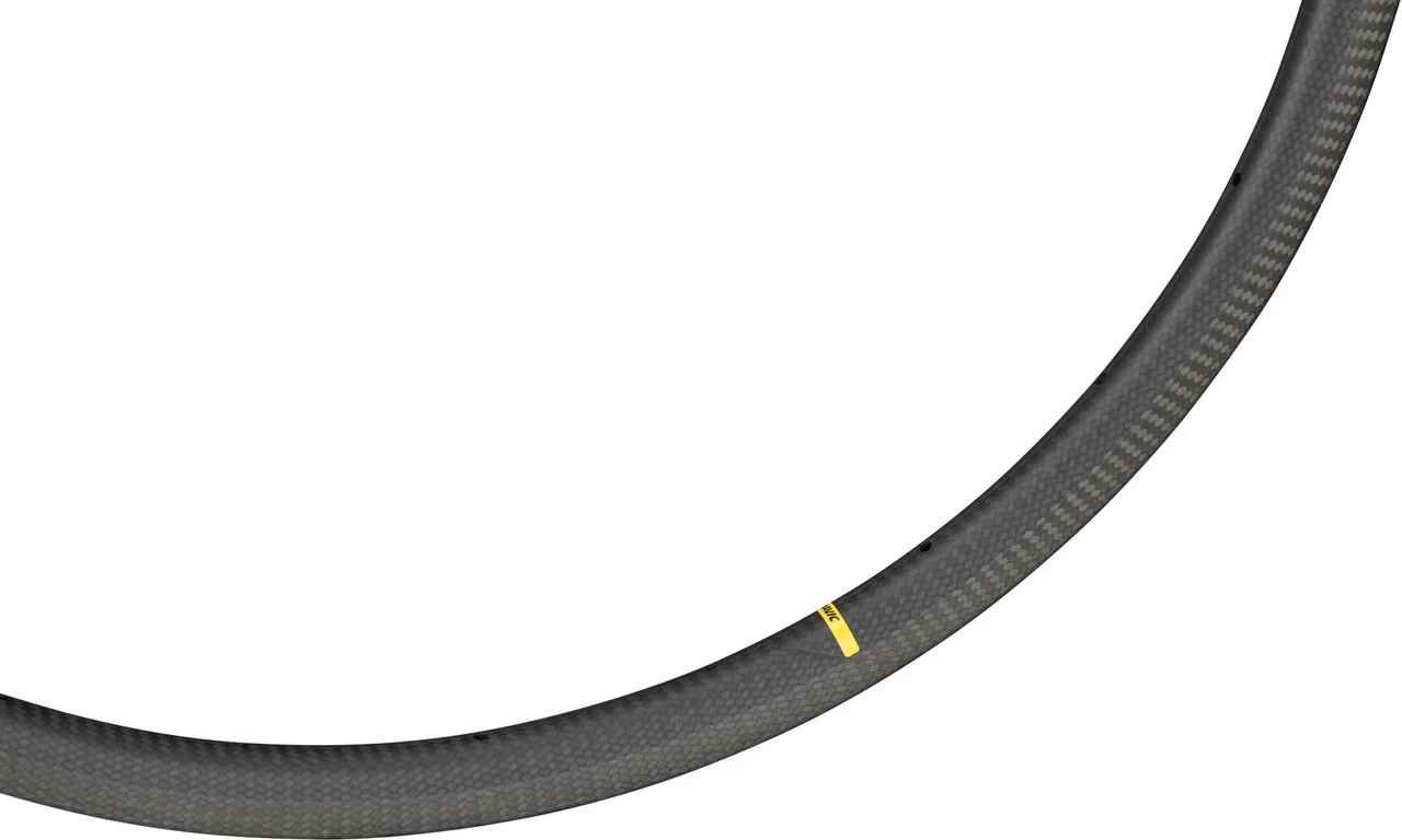 The Mavic Open Pro Carbon UST rim crowns the Mavic Open Pro series. It is slightly lighter than the aluminium model thanks to carbon fibres and features iTgMAX brake track technology for optimum braking performance in all conditions. It is best to ride them without a tube to benefit from Road Tubeless advantages, such as lower rolling resistance, puncture protection and less weight. The rim profile of the Open Pro Carbon is 25 mm high and therefore rather flat.