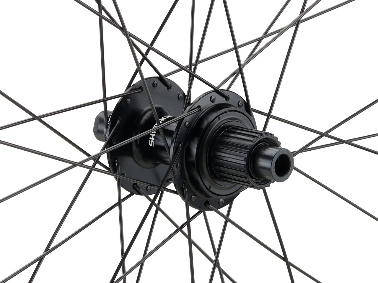 Rim: blackHubs: blackSpokes: blackNipples: silverModels:29″ set (front 15×110 Boost + rear 12×142) Shimano: