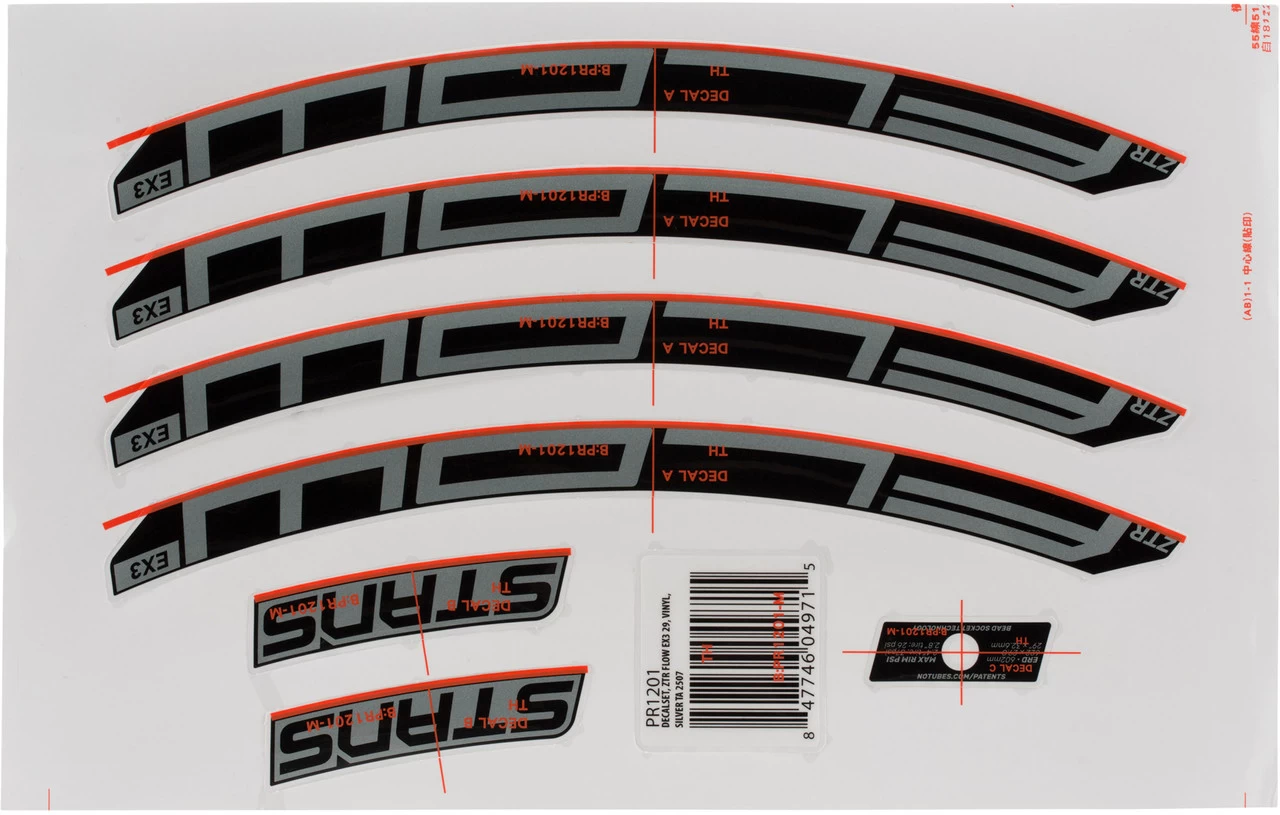 The NoTubes decal set lets you deck out your 29″ Flow EX3 wheels with new colours.