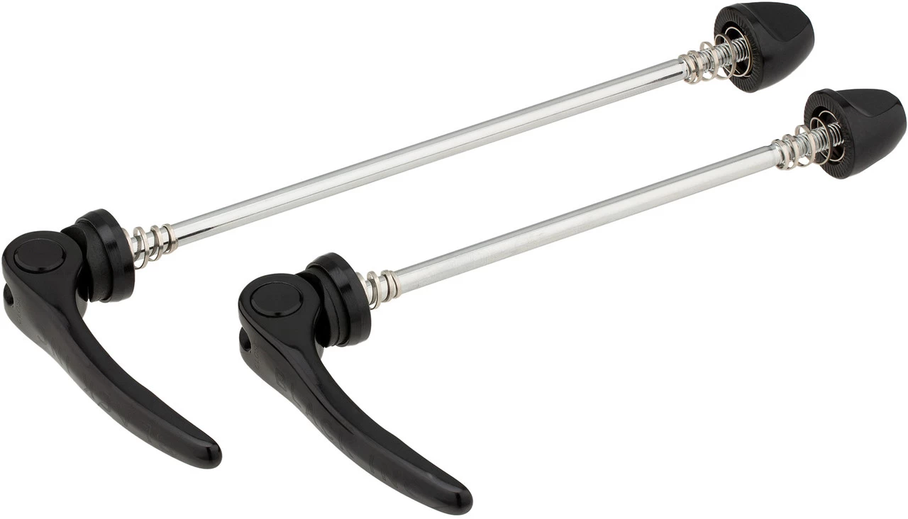 Contents:1 x Black Inc front wheel quick release1 x Black Inc rear wheel quick release