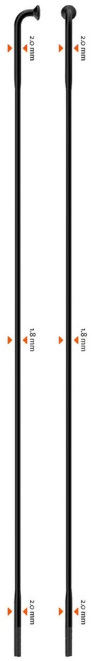 Sapim offers double-butted spokes (2.0-1.8-2.0) with an arc length of 2.9 mm, as they are needed for lacing a Rohloff Speedhub.