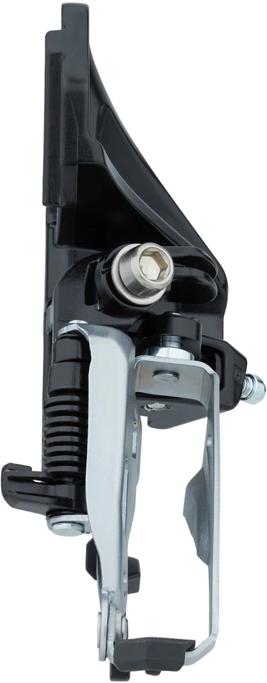 Shimano FD-M3120 is a front derailleur from the Alivio series for mountain bikes with 2×9-speed drivetrain. The version for medium-height clamp mounting is only compatible with a conventional chainline of 48.8 mm, while the Direct Mount and E-Type versions are also suitable for a chainline of 51.8 mm, which is 3 mm further out. The front derailleur has been equipped with the Side-Swing construction, which provides improved cable routing and smooth shifting performance with lower operating forces. In addition, there is the increased capacity of 14 teeth, which allows large chainrings with 36 teeth, and the increased clearance, which makes this front derailleur suitable for modern bikes with wide tyres, full suspension and short chainstays. FD-M3120 is made of steel and weight-saving aluminium.