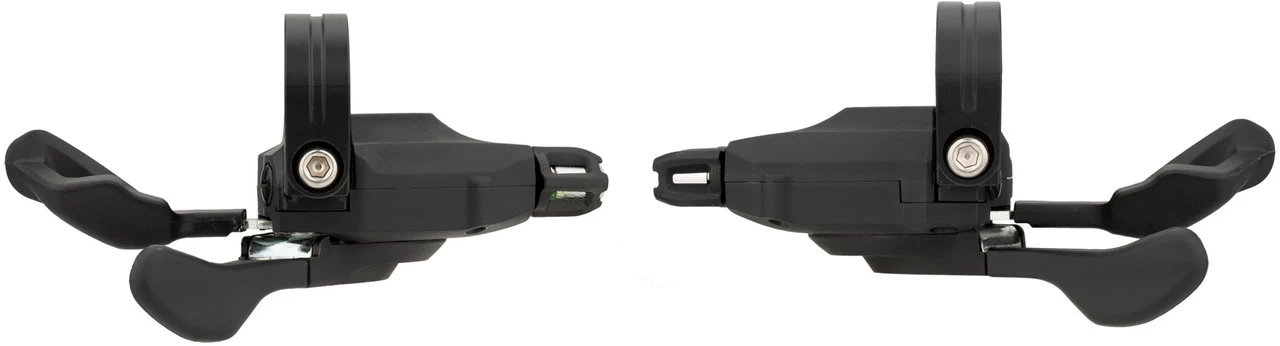 The Shimano Deore SL-M6000 shifter set consists of a shifter for left (2-/3-speed) and a shifter for right (10-speed) and is designed for Mountain bike drivetrains. They are mounted to the handlebars with clamps. Optical gear indicators are not integrated. As with all Rapidfire Plus shifters, the SL-M6000 can shift down up to three gears at a time. In addition, the trigger levers can be operated both with the index finger (pulling) and with the thumb (pushing) known as the 2-Way Release function. In general, the Deore shifters convince with their smooth, powerful index shifting performance. Their housing is made of aluminium, the levers are made of plastic or steel. Optislick cables with friction-reducing coating and cable housings are included.