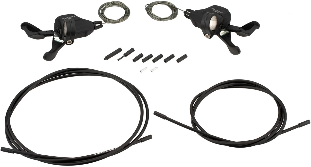 Contents:1 x pair Shimano Deore SL-M6000 shifters1 x Shimano cable, 1800 mm1 x Shimano cable, 2050 mm1 x Shimano OT-SP41 1880 mm cable housing1 x Shimano OT-SP41 1320 mm cable housing5 x Shimano 6 mm sealed end caps1 x Shimano long nose end cap