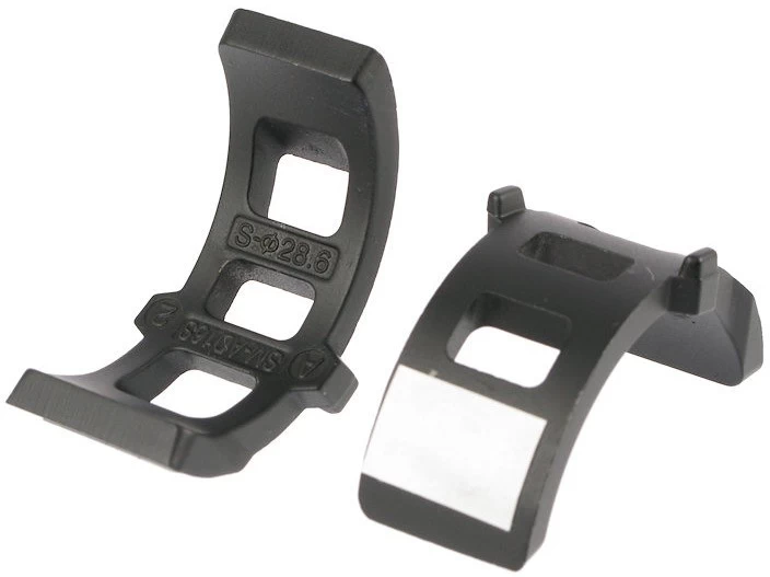 The Shimano front derailleur clamp shim is used to adapt a 34.9 mm front derailleur clamp to smaller diameter seat tubes. The front derailleur can also be attached to 31.8 mm or 28.6 mm seat tubes.