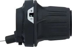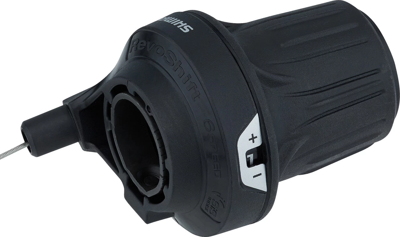 Shimano Revoshift shifters are simply twisted between thumb and forefinger to shift gears, allowing the handlebars to maintain a firm grip. This simple, safe way of shifting is particularly suitable for occasional riders and children. The stepped shape of the turn shifter ensures that it can be operated easily regardless of hand size.