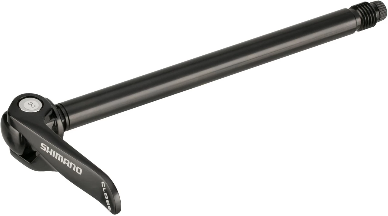 The Shimano SM-AX720 thru-axle is available in two versions: for 12 x 100 mm Road front wheels and for 12 x 142 mm Road and MTB rear wheels. Thanks to the Shimano E-Thru construction, it convinces with optimal stiffness at minimal weight. Both the lever and the 121 or 163 mm long hollow axle are made of aluminium.