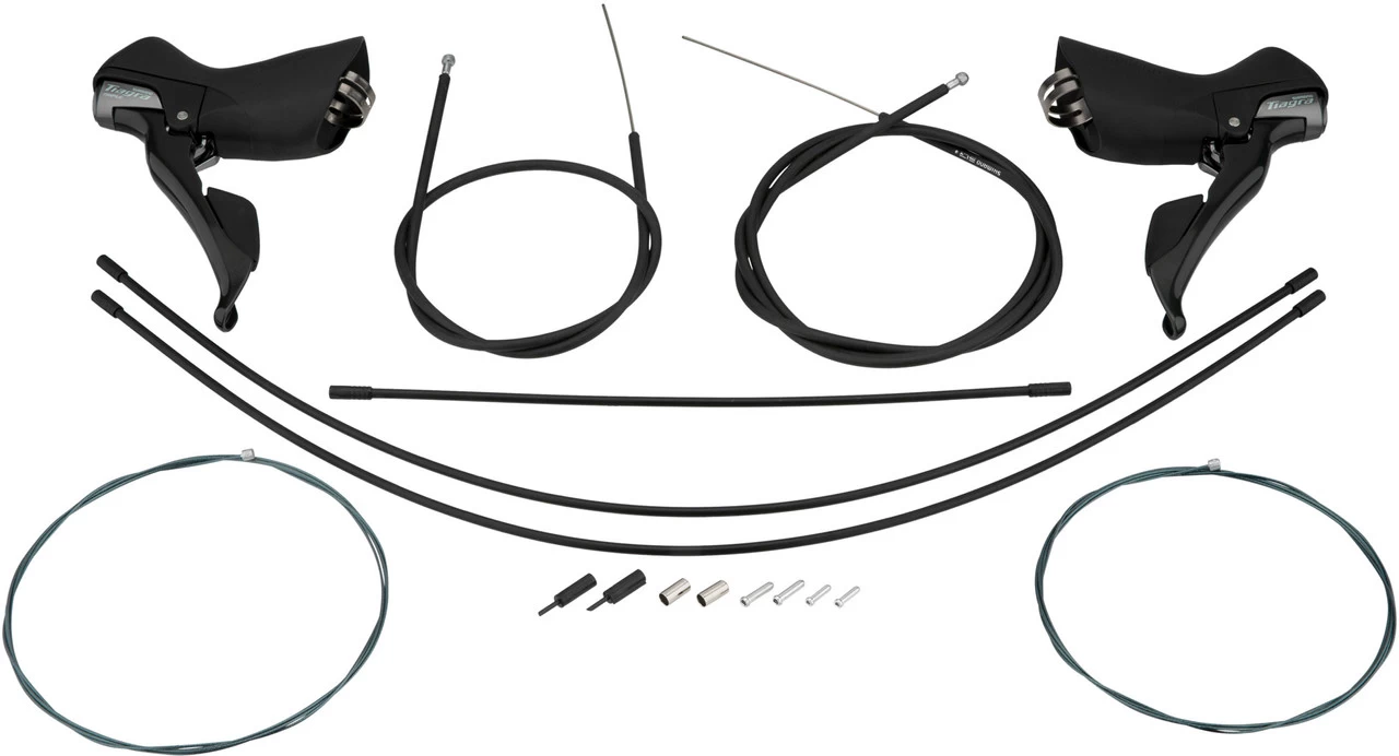 Type:ST-4703Gearing:3-speed, 10-speedManufacturer Number:I-ST4703PAC2Contents:1 x pair Shimano Tiagra ST-4700 shift/brake levers or ST-47031 x Shimano cable, 2100 mm1 x Shimano cable, 1800 mm2 x brake cables3 x shifter cable housings2 x brake cable housings