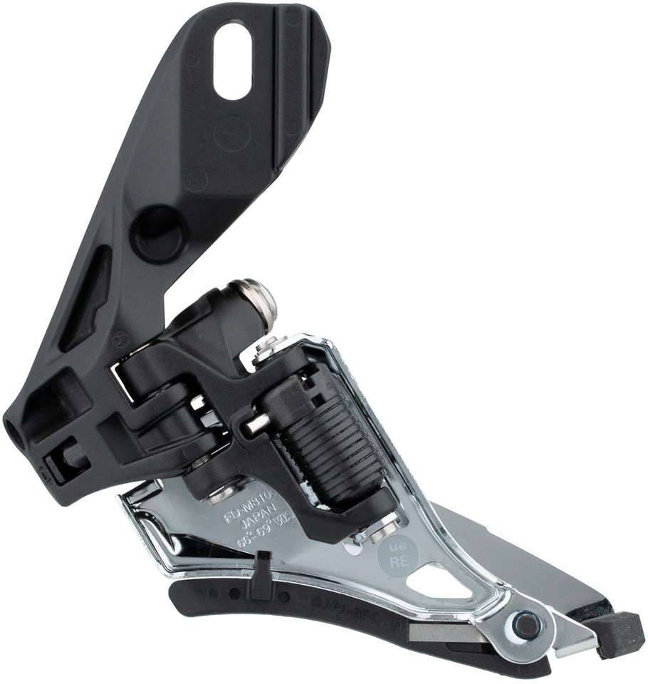 The Shimano XT FD-M8100 is a side-swing derailleur designed specifically for the XT 26/36 tooth cranks. It can be mounted in a variety of ways (high direct mount, low direct mount, clamp) and ensures more tyre clearance. Front derailleur FD-M8100 is compatible with both a 48.8 mm chainline and a 51.8 mm chainline 3 mm further out.