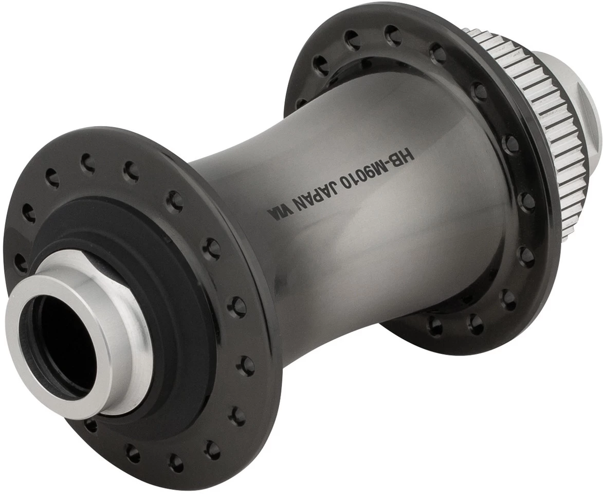 The Shimano XTR HB-M9010 front hub has been specially designed for the XTR M9000 groupset. It is compatible with 15 x 100 mm thru axle systems and is based on E-Thru technology, which ensures an optimum strength-to-weight ratio. Stainless steel balls are used in the precision machined, ground cup & cone bearing. Hub body and axle are made of lightweight aluminium.