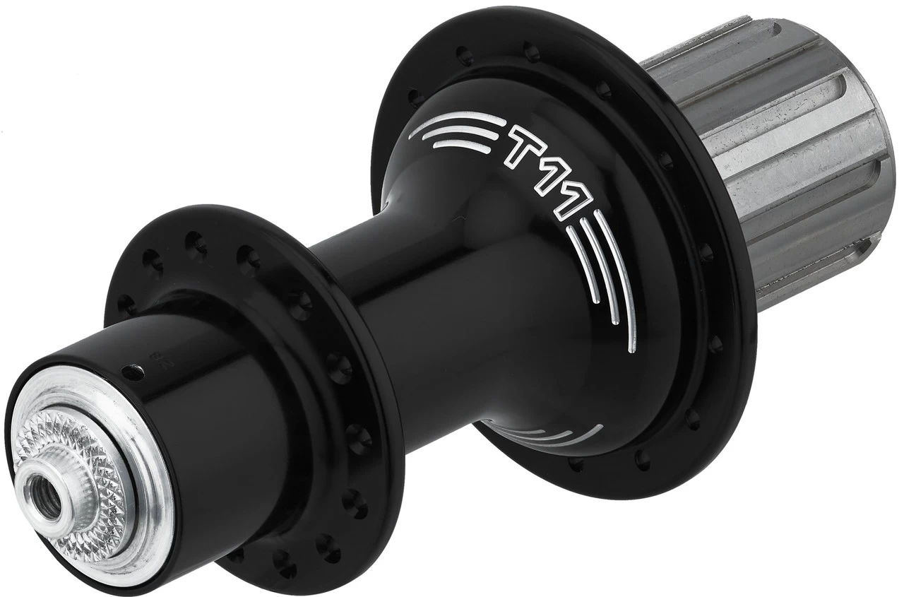 Specifications:Series:T11Application:RoadOver Locknut Dimension:10 x 130 mm quick releaseSpoke Hole Count:28 hole, 32 holeBrake Type:rim brakeFreehub:Shimano MTBNote:Assembly of 9-/10-speed cassettes on Shimano freehub bodies requires a spacer.Gearing:9-/10-/11-speedFreehub Body Type:titanium, 3 pawls w/ 48 teethTechnical Information:Body Material:aluminium (6061)Bearings:3 x 6902-2RS, 1 x 3802W (or 2 x 6802) cartridgeFlange Distance (L/R):53 mm (35 mm/18 mm)Partial Bolt Circle Diameter (L/R):40.5 mm/55 mmFeatures:light and robust road hub15 mm steel axletitanium freehub body for low weight and maximum durabilitydesigned and manufactured in Petaluma, California (USA)Manufacturer Numbers:black / 10 x 130 mm / 28 hole / Shimano:HUBT1128RSBKsilver / 10 x 130 mm / 28 hole / Shimano:HUBT1128RSblack / 10 x 130 mm / 32 hole / Shimano:HUBT1132RSBKsilver / 10 x 130 mm / 32 hole / Shimano:HUBT1132RSContents:1 x White Industries T11 rear hubincl. spacernot incl. quick releases