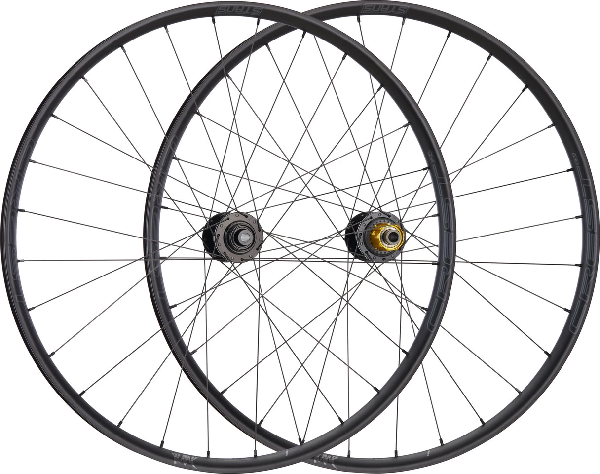 Specifications:Application:Gravel, CyclocrossWheel Size:27.5″Tyre Type:clincher tyreNumber of Spokes:28Brake Type:Center Lock DiscTubeless System:Tubeless ReadyTechnical Information – Rim:Type:NoTubes Crest MK4Rim Flange:with hookDimensions (ETRTO):25-584Inner Width:25 mmOuter Width:28.4 mmDepth:18 mmERD:563 mmValve Hole Diameter:SV/Presta (6.5 mm)Rim Material:aluminiumTechnical Information – Front Hub:Type:tune KillHillOver Locknut Dimension:12 x 100 mm thru-axleBearings:Endurance ball bearings, double-sealedBody Material:aluminiumTechnical Information – Rear Hub:Type:tune ClimbHillOver Locknut Dimension:12 x 142 mm thru-axleBearings:Endurance ball bearings, double-sealedBody Material:aluminiumFreehub Body Material:aluminiumFreehub Body:3T Endur with 3 titanium pawls and reinforced freehub bodyTechnical Information – Lacing:Front Lacing Pattern:3-crossRear Lacing Pattern:3-crossSpoke Type:SAPIM D-Light / J-bend / straight / double buttedSpoke Material:steelNipple Type:Sapim Polyax Secure LockNipple Material:aluminiumApproved For:Weight Limit:100 kg system weight, 90 kg rider weightAir Pressure (max.):4.1 bars (38 mm), 2.7 bars (2.2″ ), 2.6 bars (50 mm)Recommended Tyre Width:25 – 50 mmFeatures:durable and lightweight 27.5″ wheelset for gravel bikes and cyclocrosserscenter-lock hubs for disc brakesaluminium rims from Stan’s NoTubes with 20.3 mm inner widthKillHill/ClimbHill hub combination with extra-tight and dirt-resistant Endurance bearingsreinforced Endurance freehub for higher stiffness with titanium pawlsrecommended rim tape width: 28 mmrecommended valve height: 35 mmNote from the manufacturer:This wheelset is only suitable for tubeless tyres.