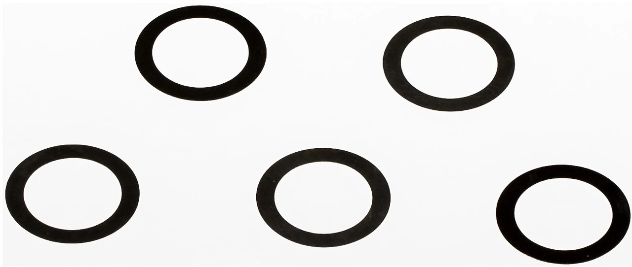 Technical Information:Material:steelInner Diameter:17 mmOuter Diameter:24 mmThickness:0.1 mm, 0.15 mm, 0.2 mmManufacturer Numbers:0.1 mm:BNZ03000.15 mm:BNZ03010.2 mm:BNZ0302Contents:5 x tune adjust washers